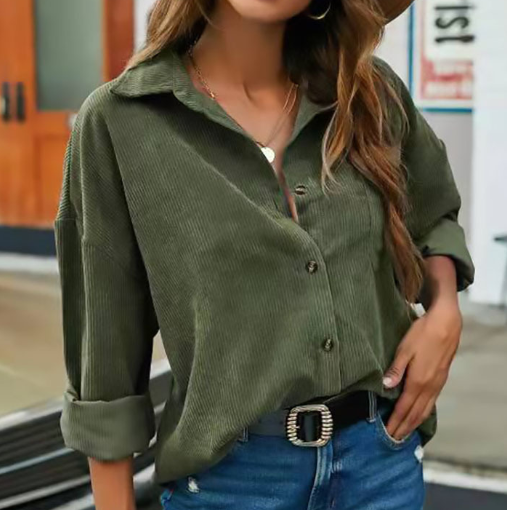 Blusa clásica de pana relajada - Verde militar / Chico está agotado y se enviará tan pronto como vuelva a estar disponible.