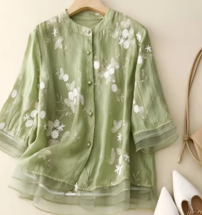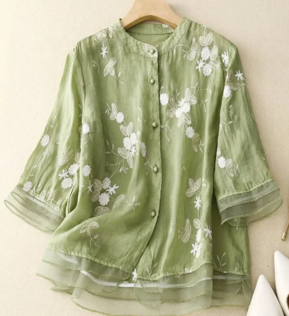 LIZZY - BLUSA DE FLORES BORDADAS - XXL (42/44) / Albaricoque