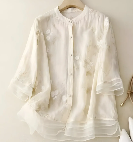 BLUSA DE FLORES BORDADAS - Blanco / Mediano está agotado y se enviará tan pronto como vuelva a estar disponible.