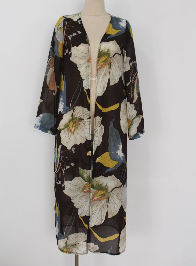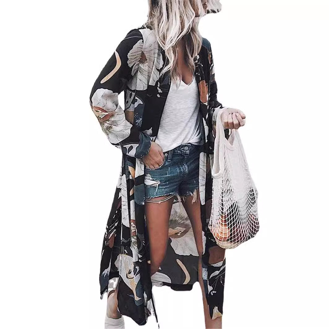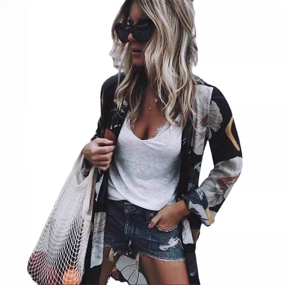 Cárdigan de gasa con estampado europeo y americano, blusa playera larga, ropa de mujer con protección solar - 1 / Chico está agotado y se enviará tan pronto como vuelva a estar disponible.