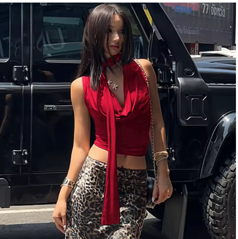 Chaleco sin mangas con cuello de cinta para mujer