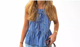 Top azul de rayas con lazo delantero