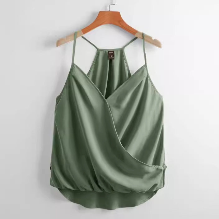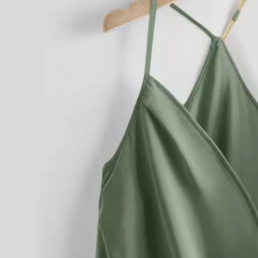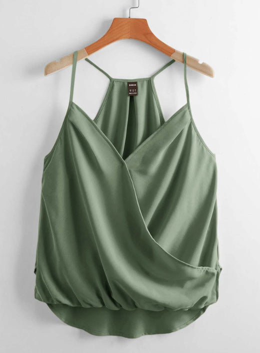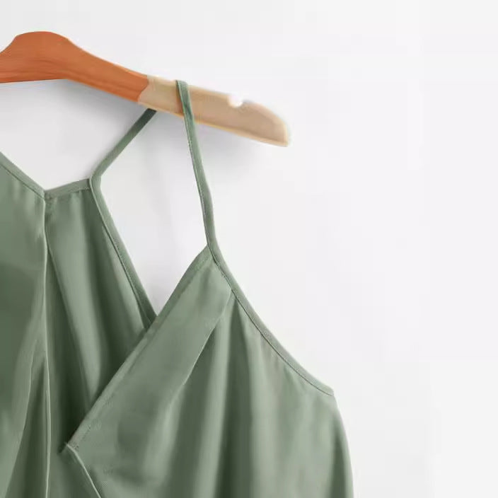 Top de tirantes cruzados con escote en V estilo coreano Niche - Verde / Chico está agotado y se enviará tan pronto como vuelva a estar disponible.