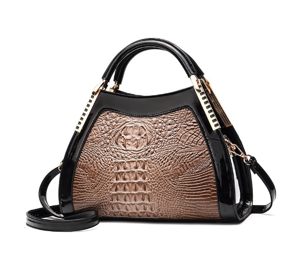 Bolsa de Cuero Genuino con Estampado de Cocodrilo