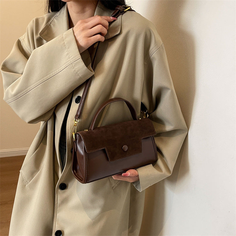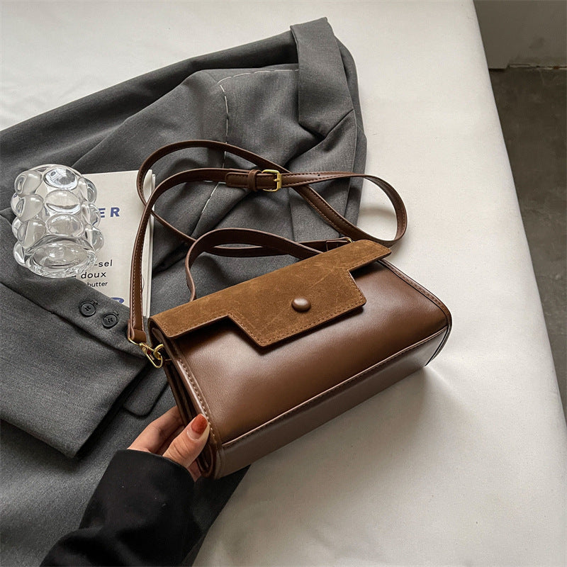 Bolso pequeño esmerilado de otoño e invierno para mujer 2023, nuevo bolso de mano con textura retro, versátil, estilo occidental, bandolera cuadrada pequeña.