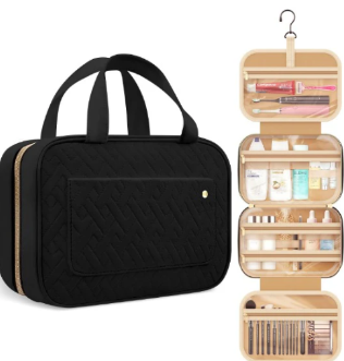 El neceser colgante tiene un tamaño compacto de 28 x 19 x 8,5 cm y mide 80 x 28 cm abierto. Te ayuda a mantener en orden tus accesorios de viaje grandes, como champú, loción, limpiador facial, pasta de dientes, cepillo de dientes, peine y maquillaje diario.