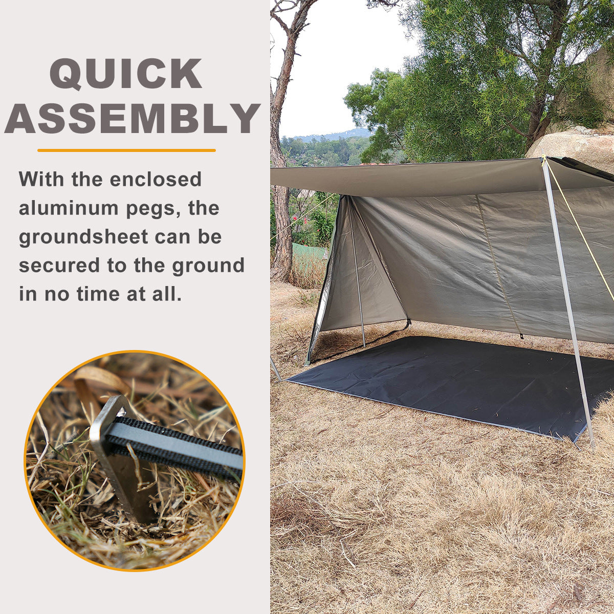 Estera de césped para exteriores con clavos de tierra, impermeable, para montañismo, picnic, playa, carpa con dosel a prueba de hierba, estera a prueba de humedad