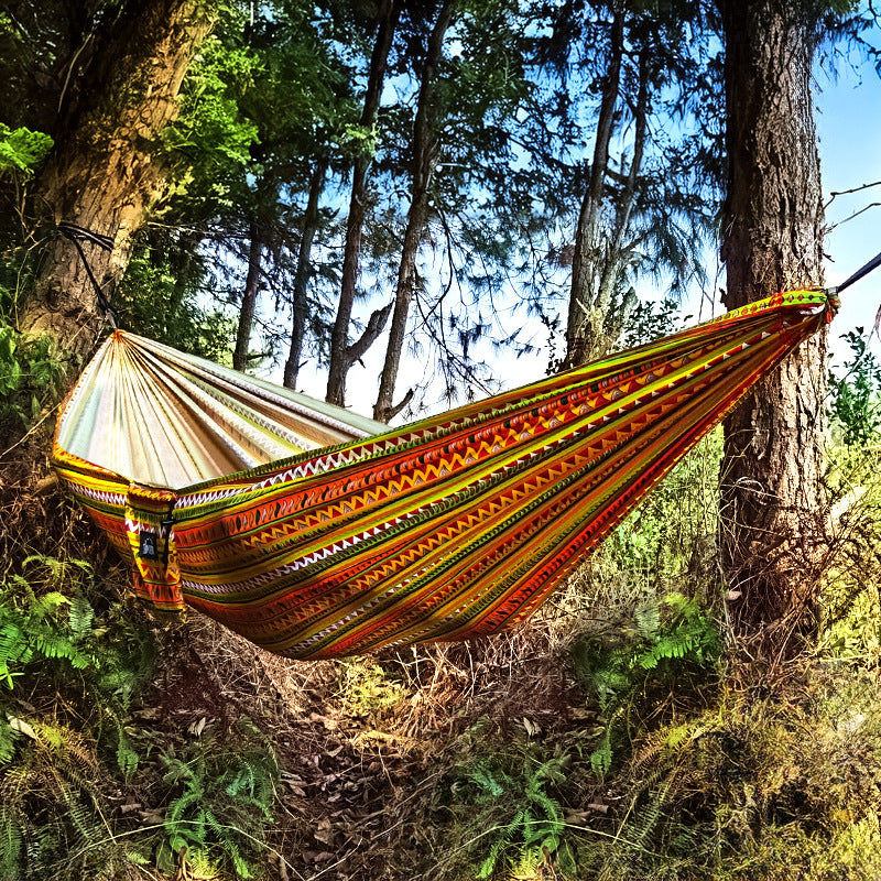 Hamaca de viaje para acampar al aire libre, rápida apertura, hamaca individual doble para interiores, sombrilla de tela estampada, hamaca para acampar en parques - 260 * 140cm Amarillo está agotado y se enviará tan pronto como vuelva a estar disponible.