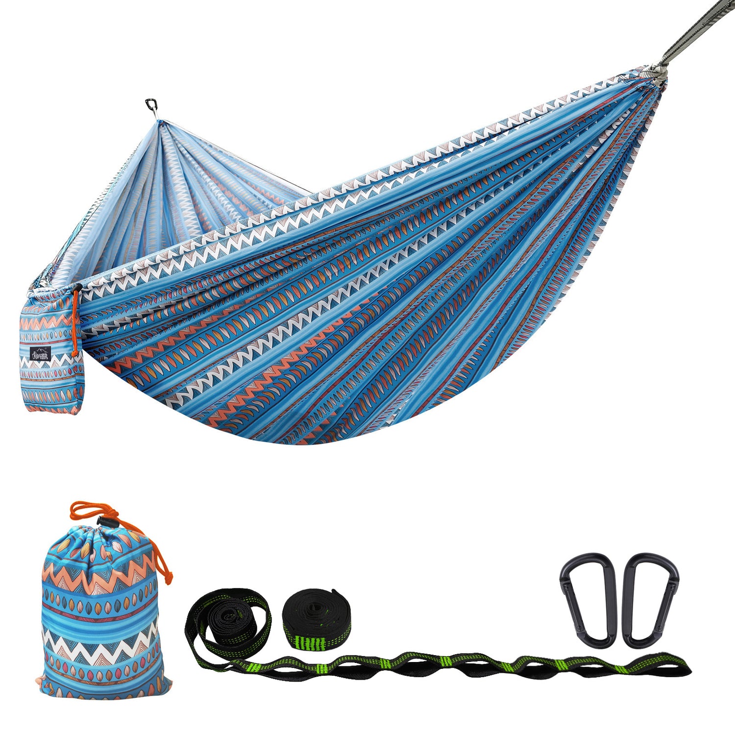 Hamaca de viaje para acampar al aire libre, rápida apertura, hamaca individual doble para interiores, sombrilla de tela estampada, hamaca para acampar en parques