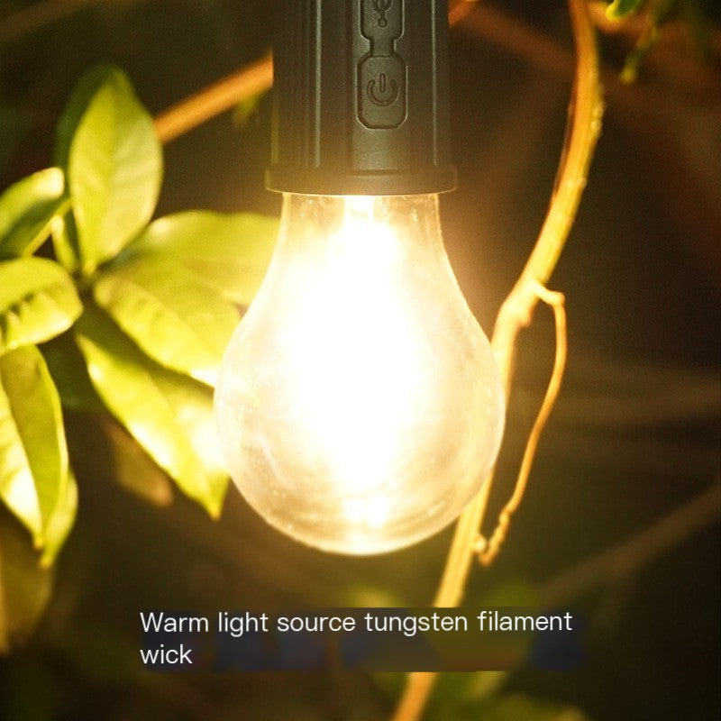 Luz LED de tungsteno para tienda de campaña, luz de camping con carga tipo C, ambiente retro