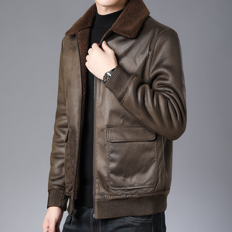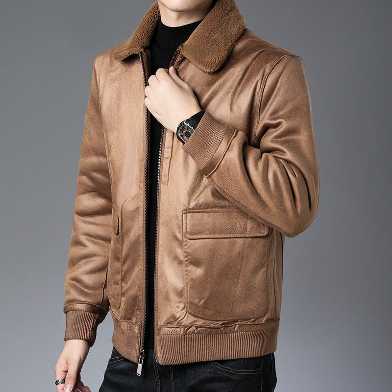 Abrigo de lana de cordero para hombre - Caqui / Mediano está agotado y se enviará tan pronto como vuelva a estar disponible.