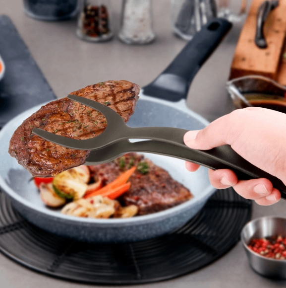 Facilita voltear y agarrar alimentos.