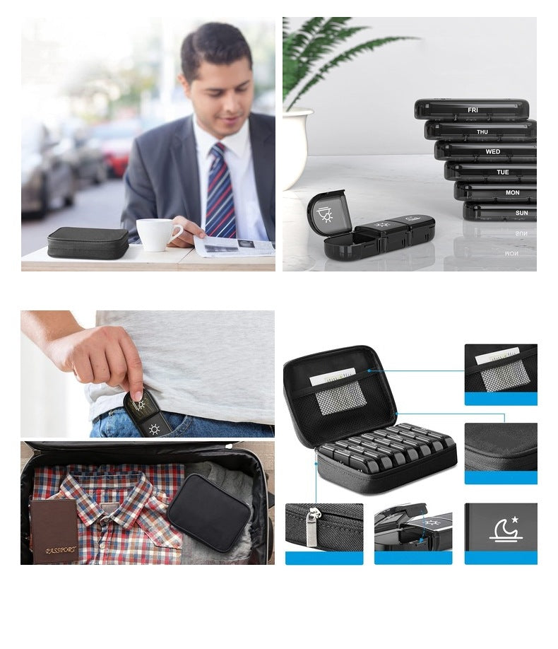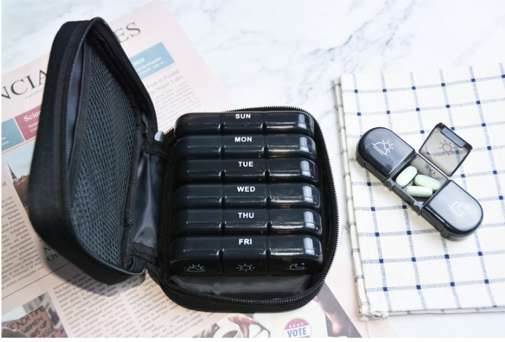 Pastillero semanal, pastillero para 2 tomas al día, organizador de medicamentos de viaje para 7 días