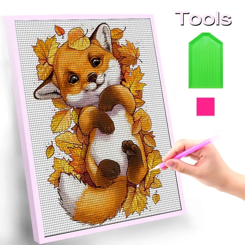 Cuadro colgante de acrílico con diseño de zorro de hoja de arce y diamantes