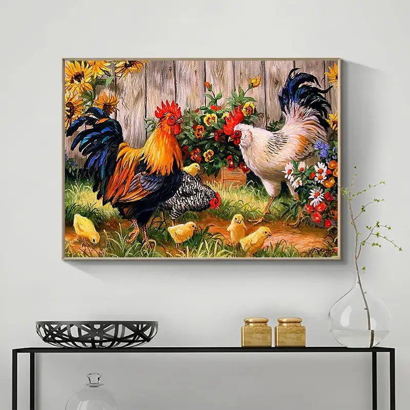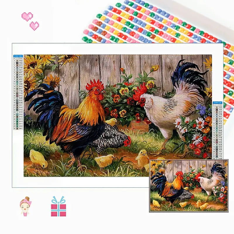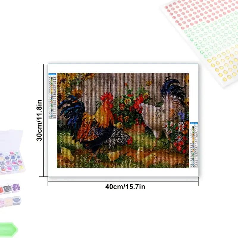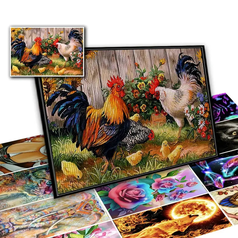 Kit de pintura de diamantes 5D con diseño de dinosaurio y pollo, ideal para manualidades.