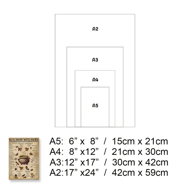 Póster de conocimiento sobre brujería, varios tamaños, para pared, para comedor, habitación infantil, tamaño A5, A4, A3, A2 - 20x25cm sin marco está agotado y se enviará tan pronto como vuelva a estar disponible.