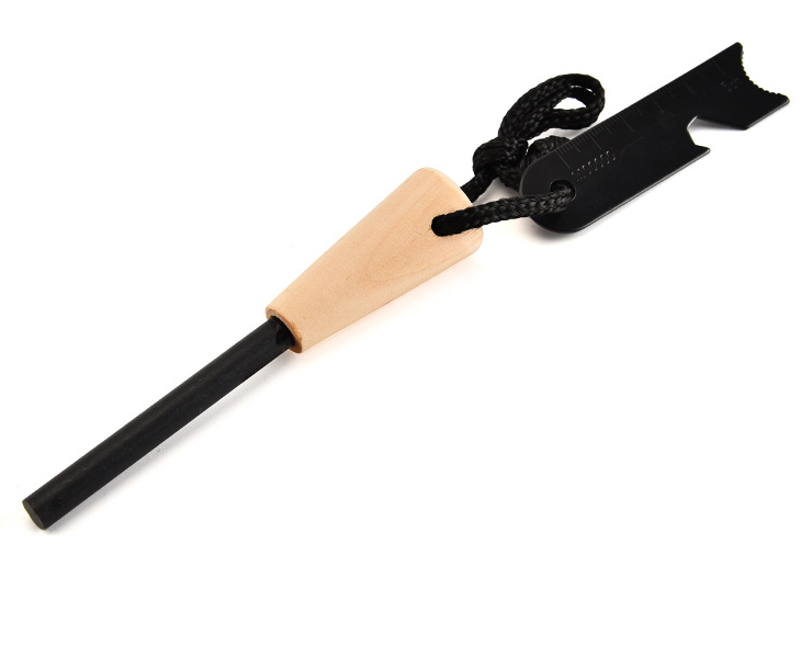 Palo de fuego con mango de madera, armas de fuego para acampar, varilla de magnesio, piedra de pedernal, herramientas de supervivencia al aire libre