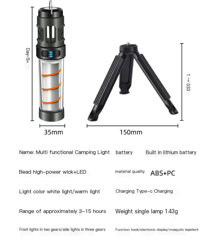 Luz de camping de alta luminosidad + descarga repelente de mosquitos: 2 horas y 40 minutos