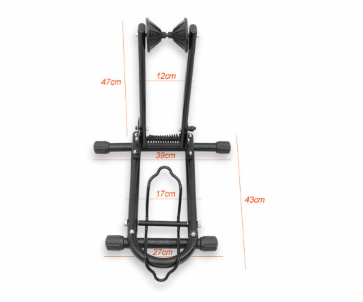 Estacionamiento de bicicletas plegable multifuncional. Marco de mantenimiento. Marco de reparación. Soporte para bicicletas, expositor, fijo. Soporte para coche. Material: acero. Completamente plegado para fácil almacenamiento. Se requiere una caja de cartón pequeña, no ocupa espacio. Ancho de neumático delantero: 1,25-2,3 cm.