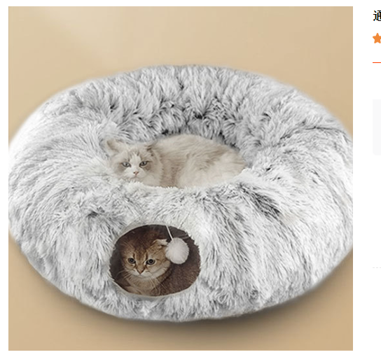 Cama de felpa con túnel para gatos de interior, multifuncional, con mirilla y forma de dona esponjosa.