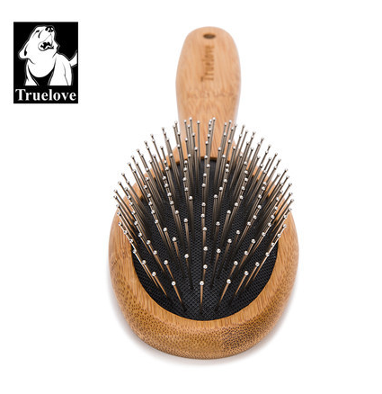 Peine redondo para mascotas con mango de madera de bambú