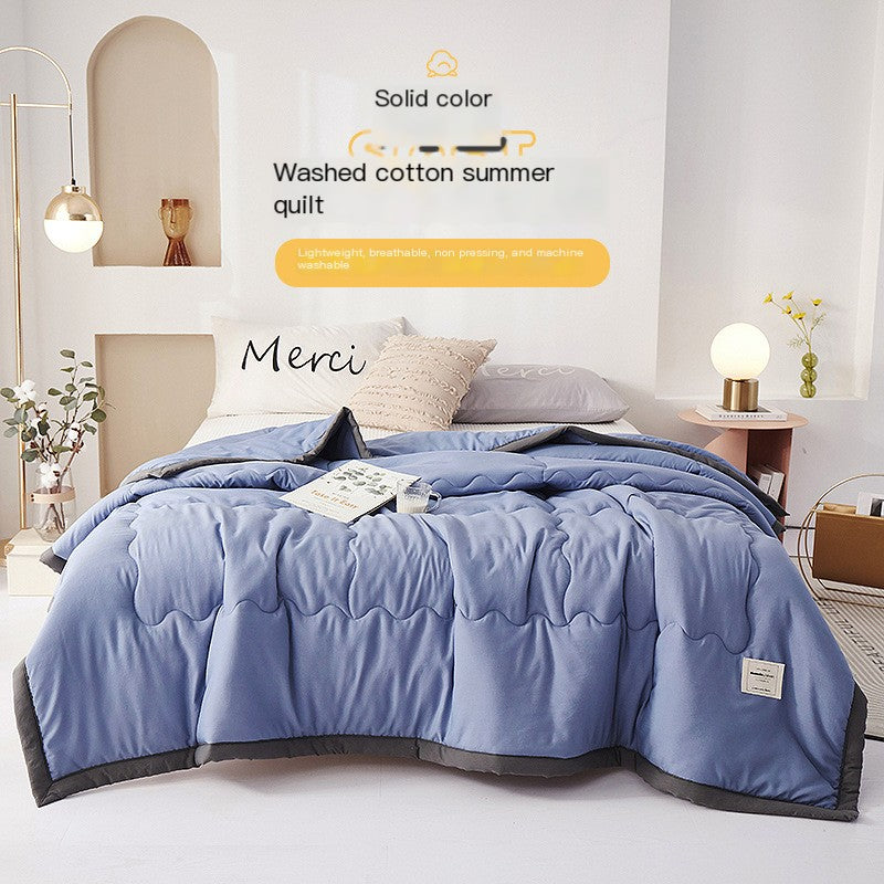 Edredón de verano de algodón lavado simple y fresco, moderno y cómodo, color azul cielo, lavable a máquina