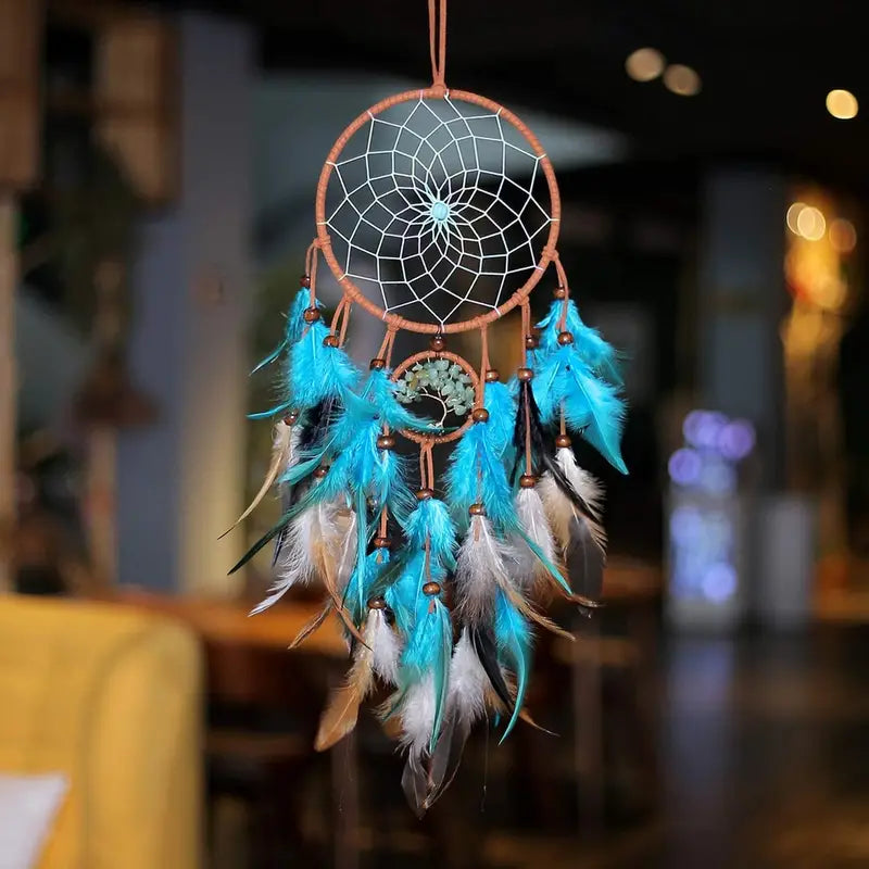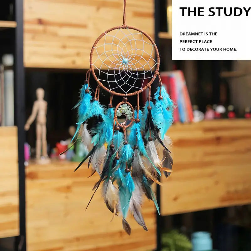 Atrapasueños azul, adorno colgante, atrapasueños de plumas, adorno colgante para decoración del hogar.