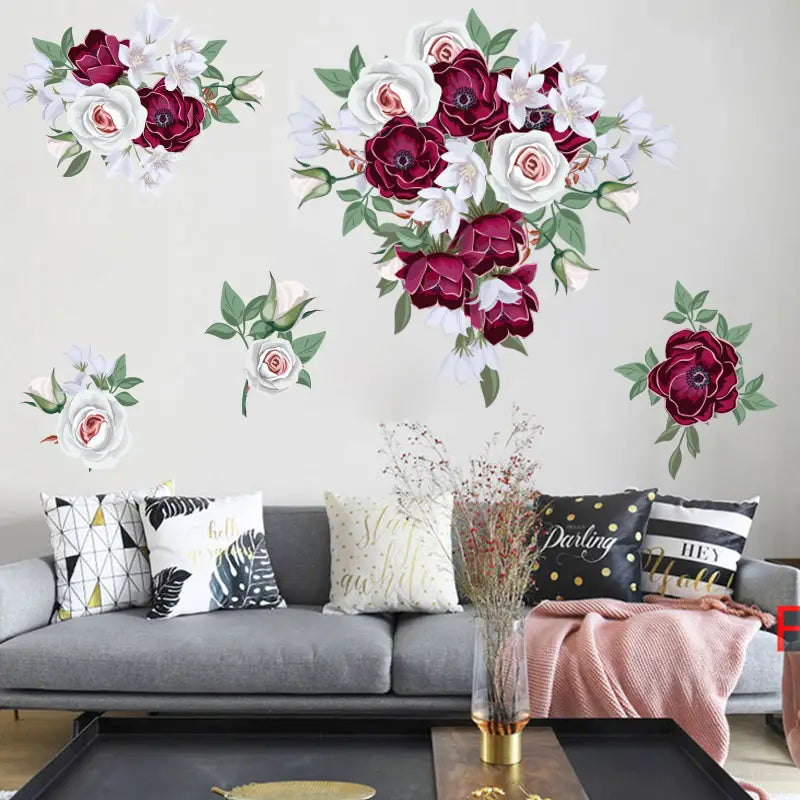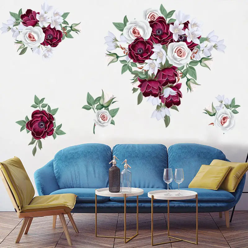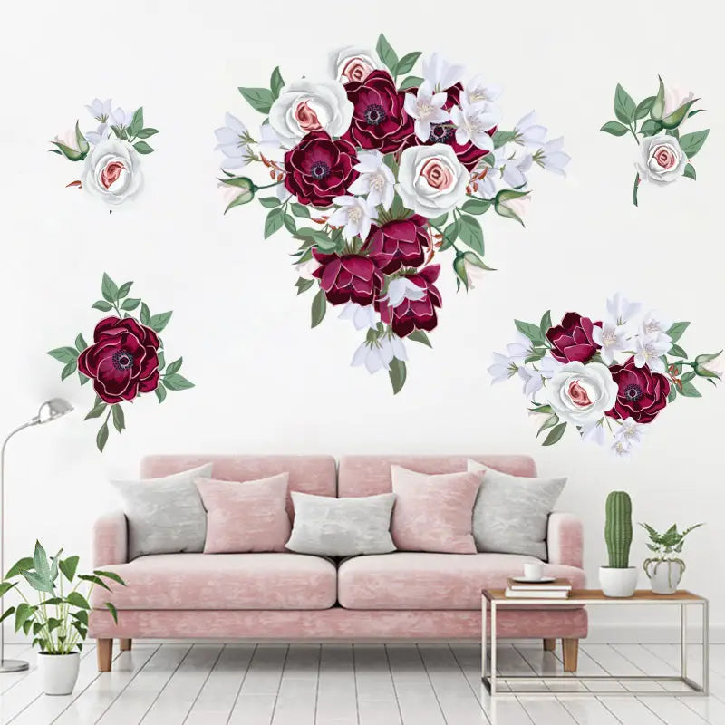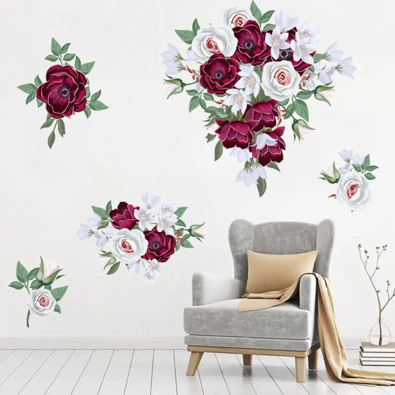 Pegatina de Pared Autoadhesiva con Estampado de Rosas y Flores