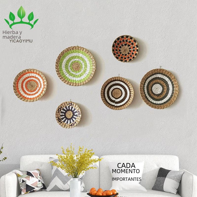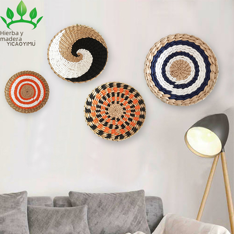 Decoración de pared de estilo bohemio, decoración de pared de paja, decoración de pared de fondo, tapiz para sofá, mesita de noche, tapiz tejido a mano