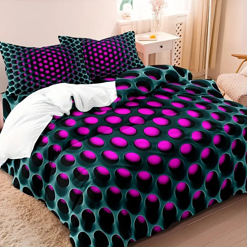 Juego de funda nórdica de 3 piezas con estampado de agujeros densos en 3D, suave y agradable para la piel.
