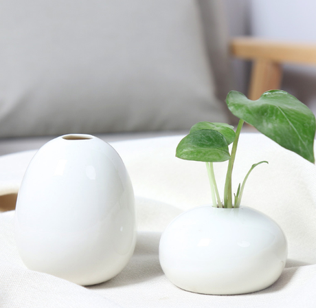 Jarrón Cerámica Blanco Hidropónico