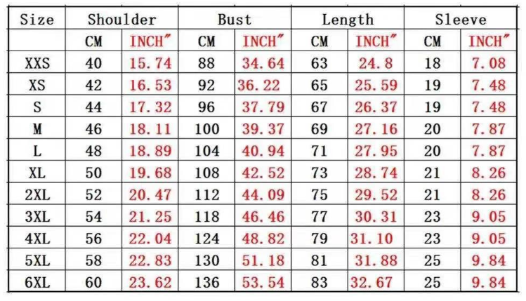 Tallas: XXS, XS, S, M, L, XL, 2XL, 3XL, 4XL, 5XL, 6XL
