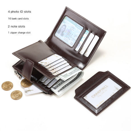 Cartera de Cuero Genuino para Hombre con Cierre de Botón