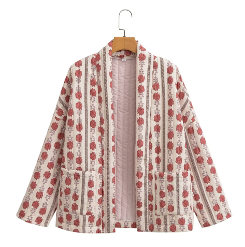 Chaqueta de algodón acolchada con estampado étnico de jersey de algodón