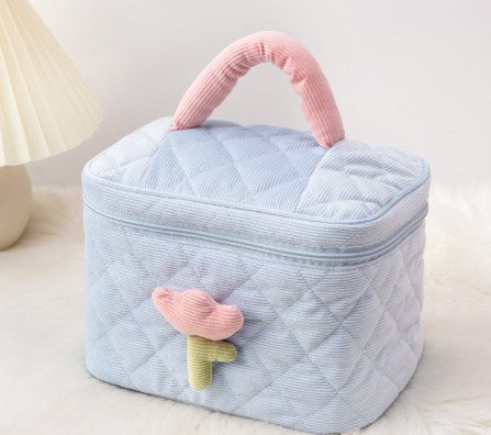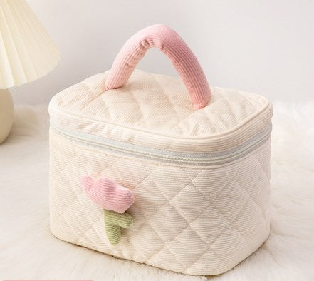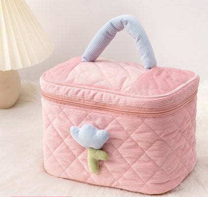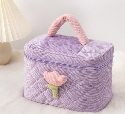 Maleta maquillaje de pana con tulipán grande