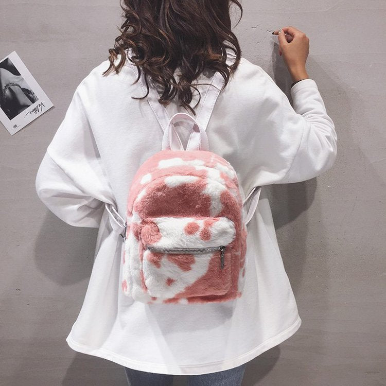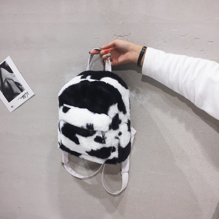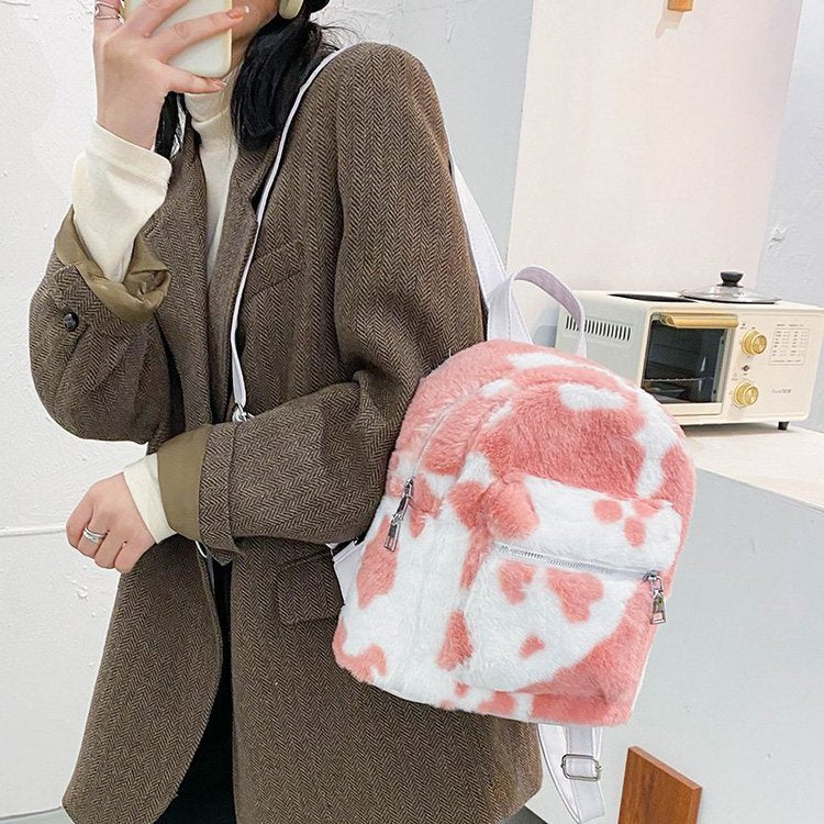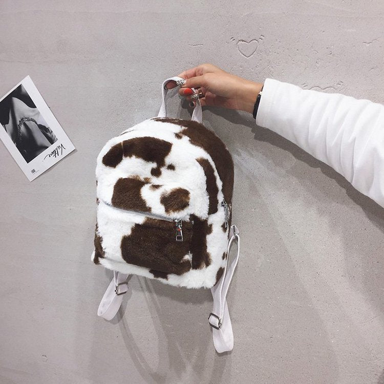 Mochila peluche vaquita pequeña para mujer