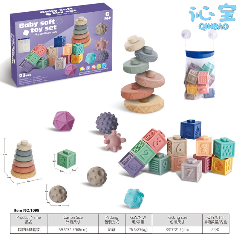 Bloques de construcción de goma suave para bebés transfronterizos, juguetes apilables ensamblados para educación infantil temprana, juego de juguetes educativos