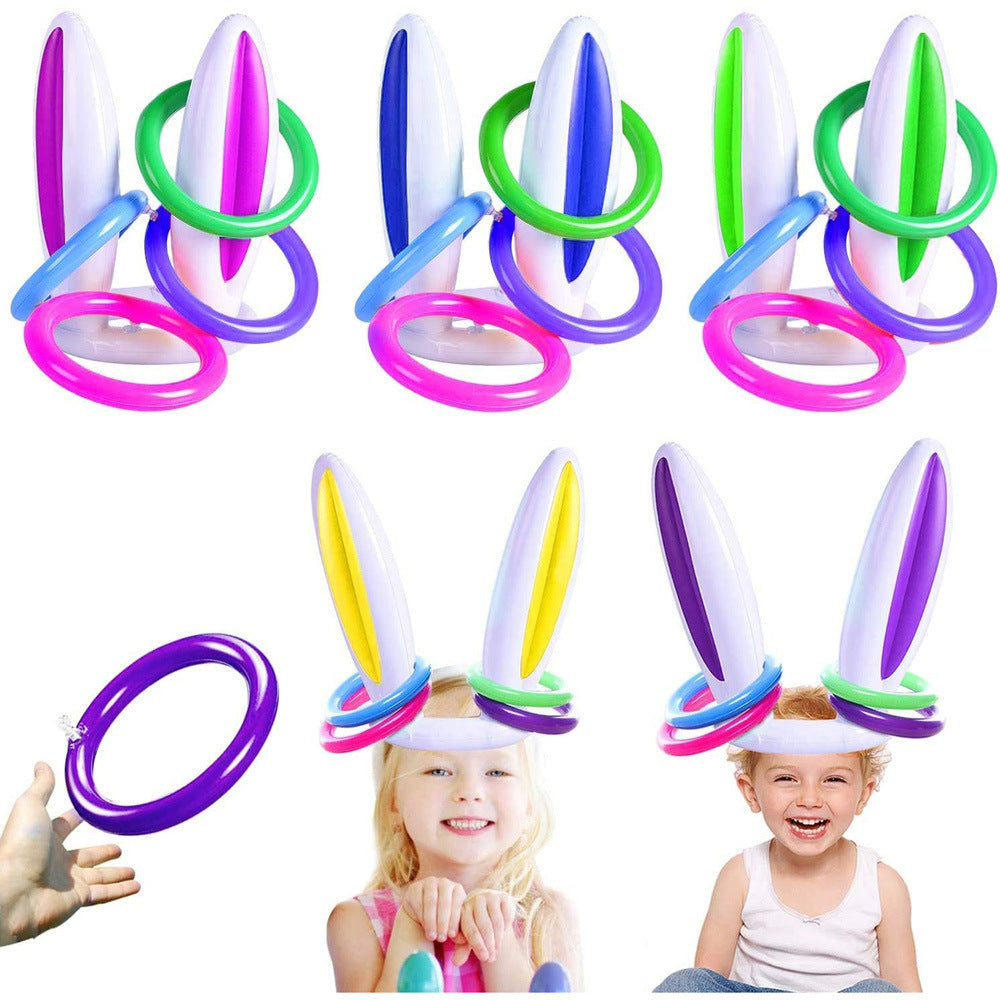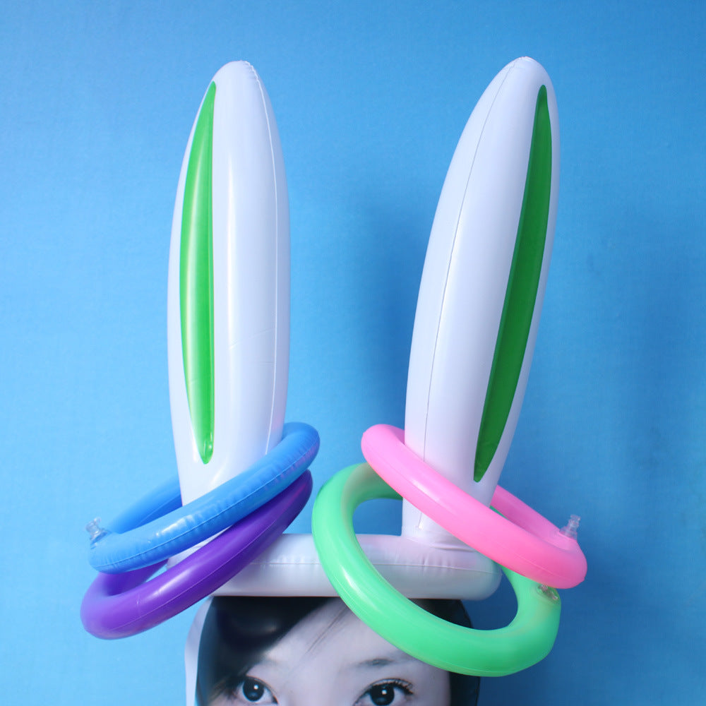 Juguete inflable transfronterizo de PVC con forma de orejas de conejo y cabeza de conejo para lanzar anillos