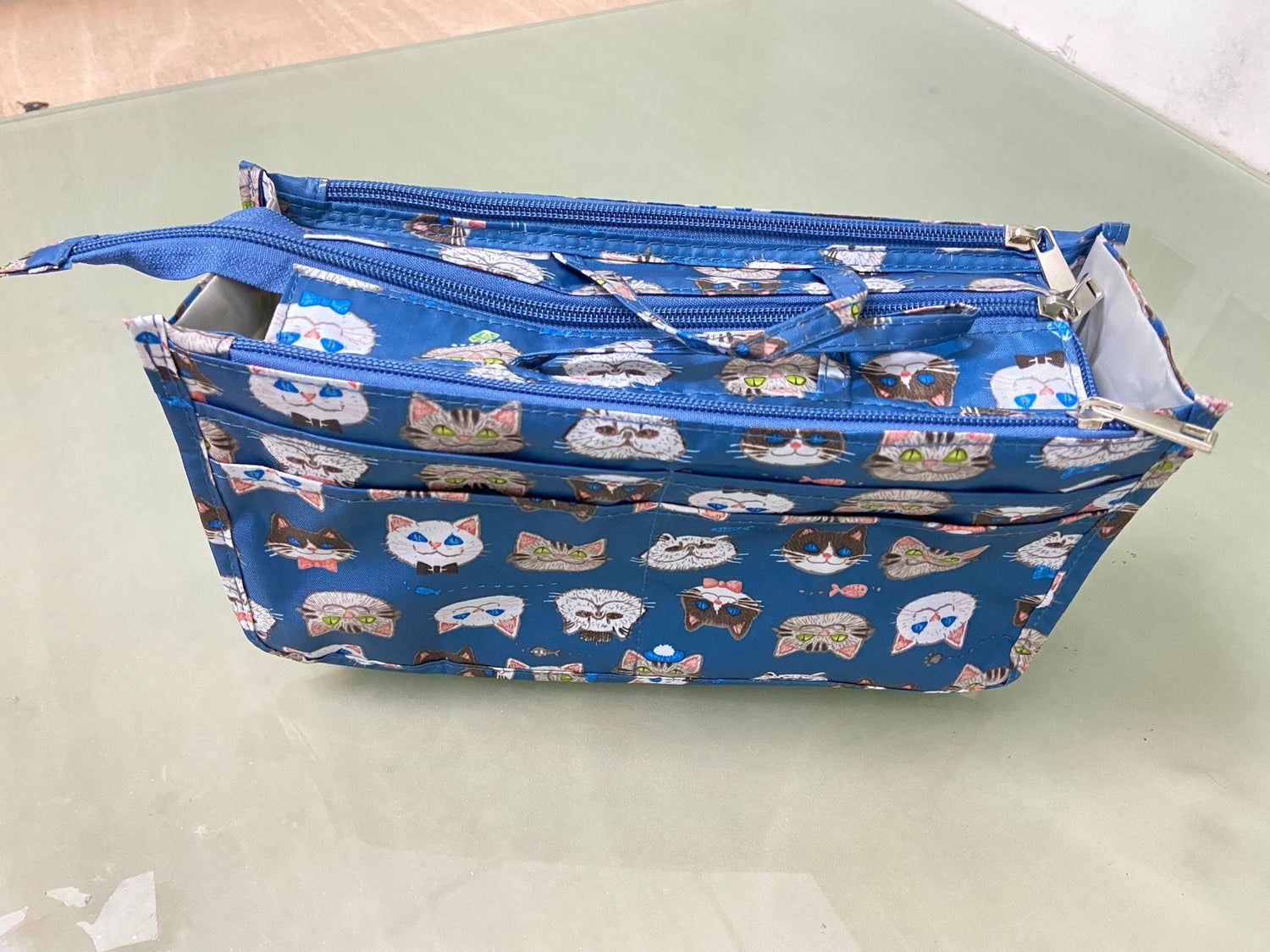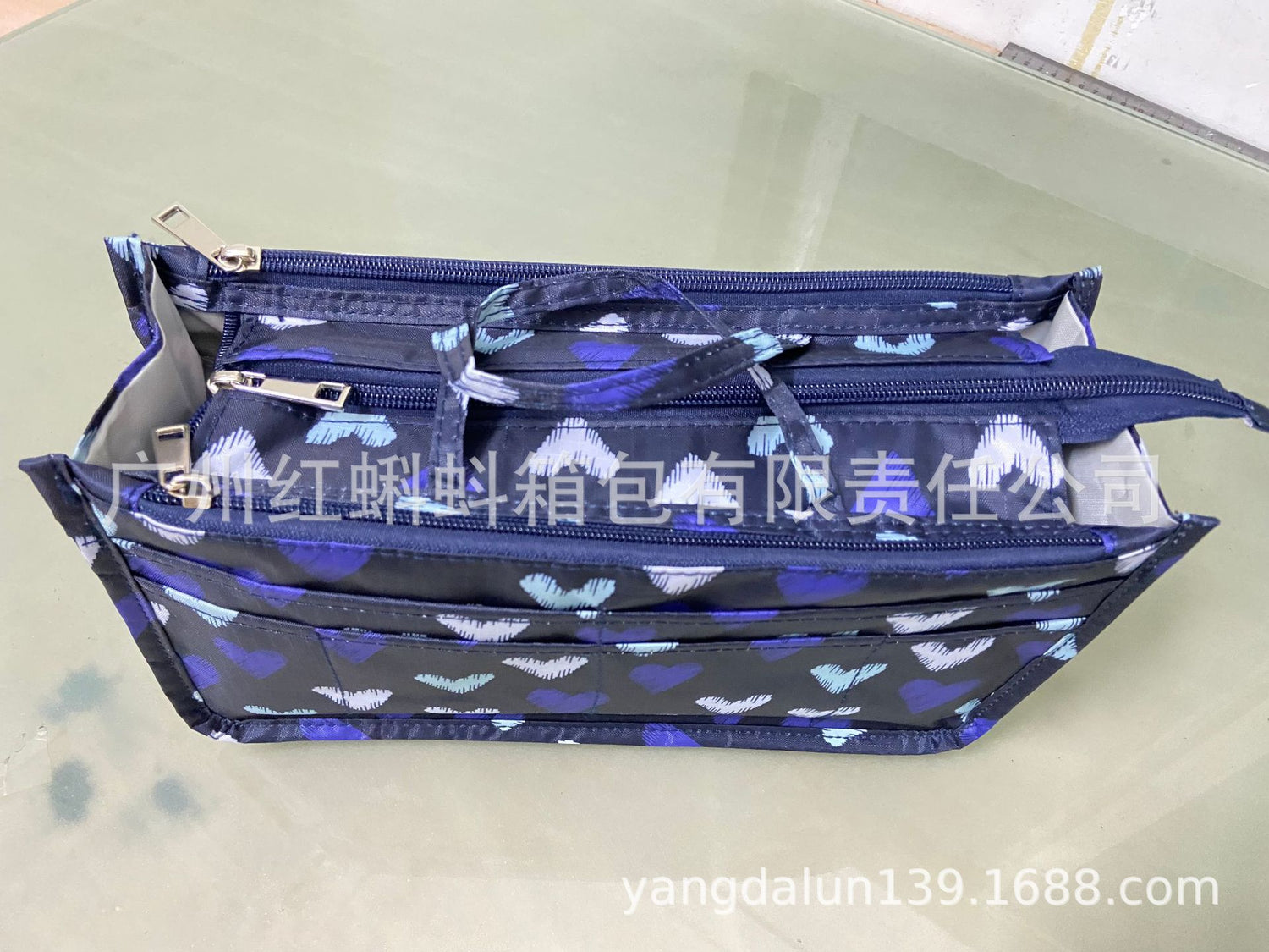 Tela Oxford impermeable: Esta bolsa de maquillaje está hecha de tela Oxford impermeable, lo que garantiza que tus cosméticos se mantengan secos y a salvo de fugas o derrames.