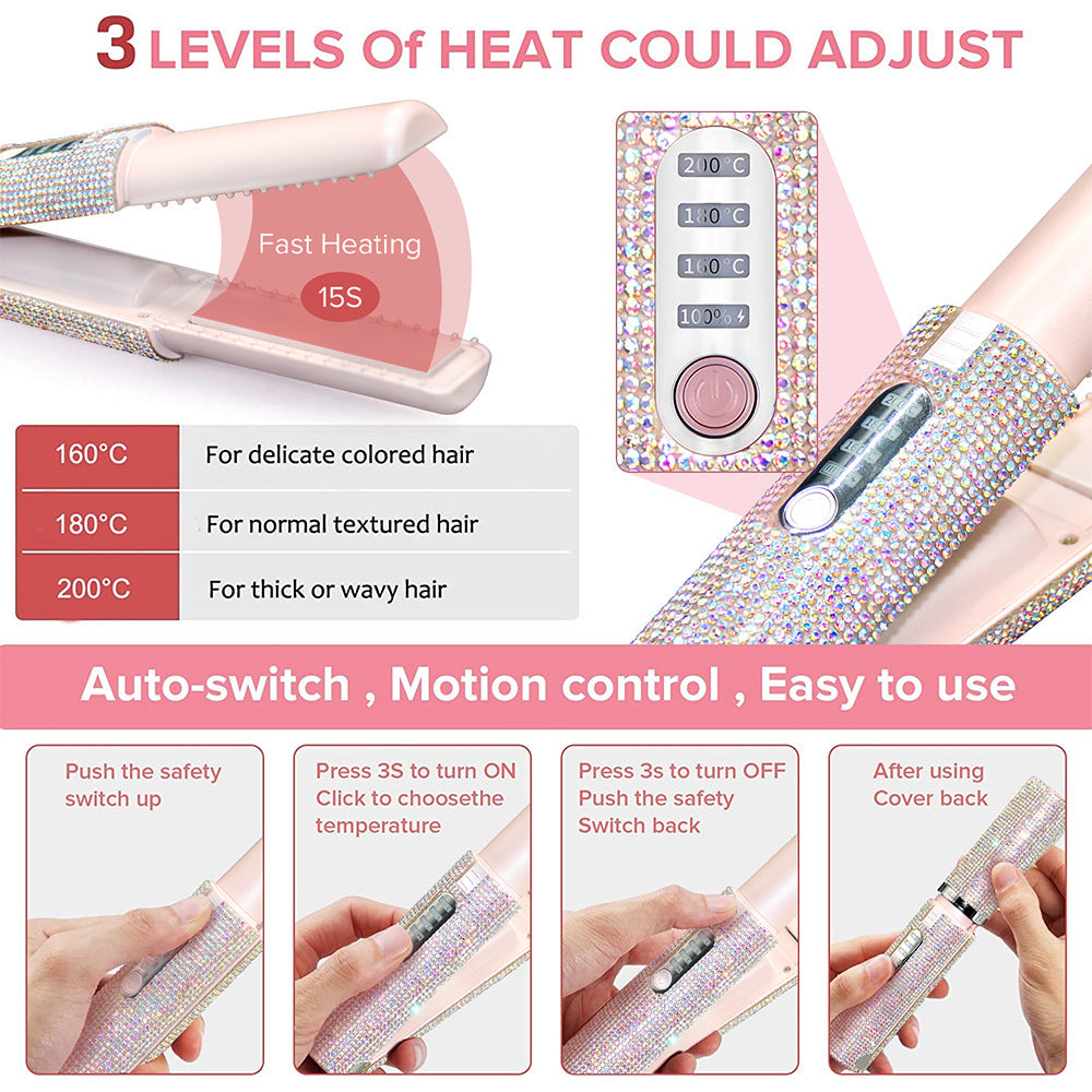 Plancha y rizador eléctrico 2 en 1 inalámbrico USB con diseño diamante