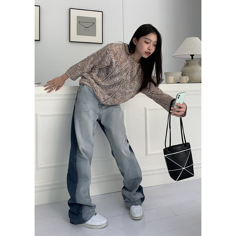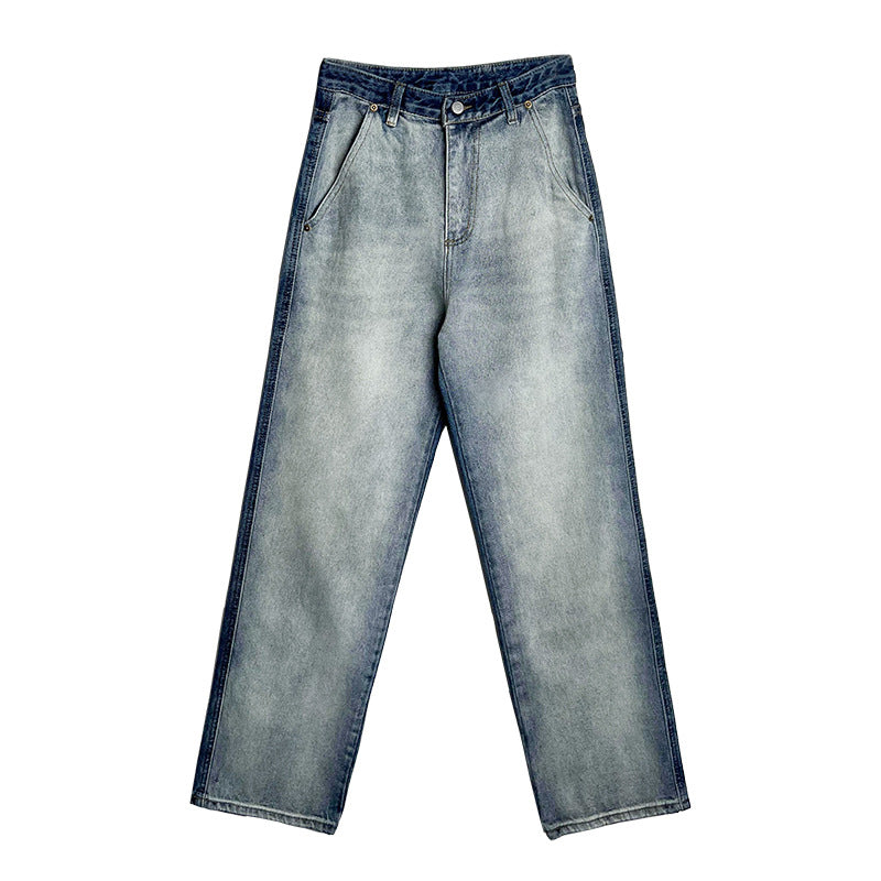 Vaqueros tie-dye con diseño retro urbano y bloques de color en la parte delantera y trasera