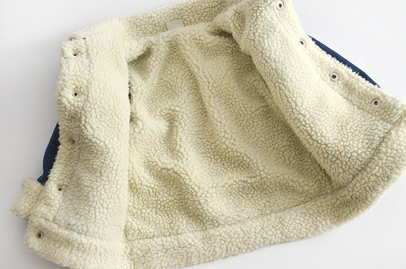 Abrigo corto de mezclilla de pelo de cordero grueso para niños y niñas - Azul / 80 está agotado y se enviará tan pronto como vuelva a estar disponible.