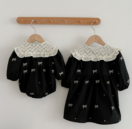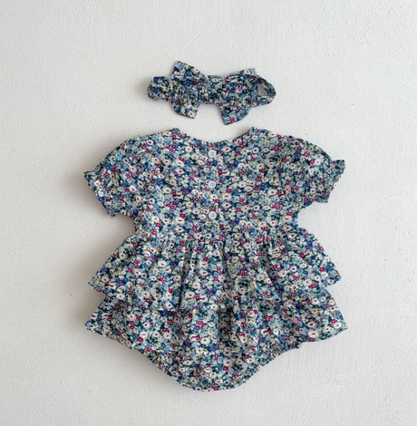 Precio normal $ 508.30Precio unitario /AgotadoVestido para para recién nacida con tirantes y vestido vaquero para niña