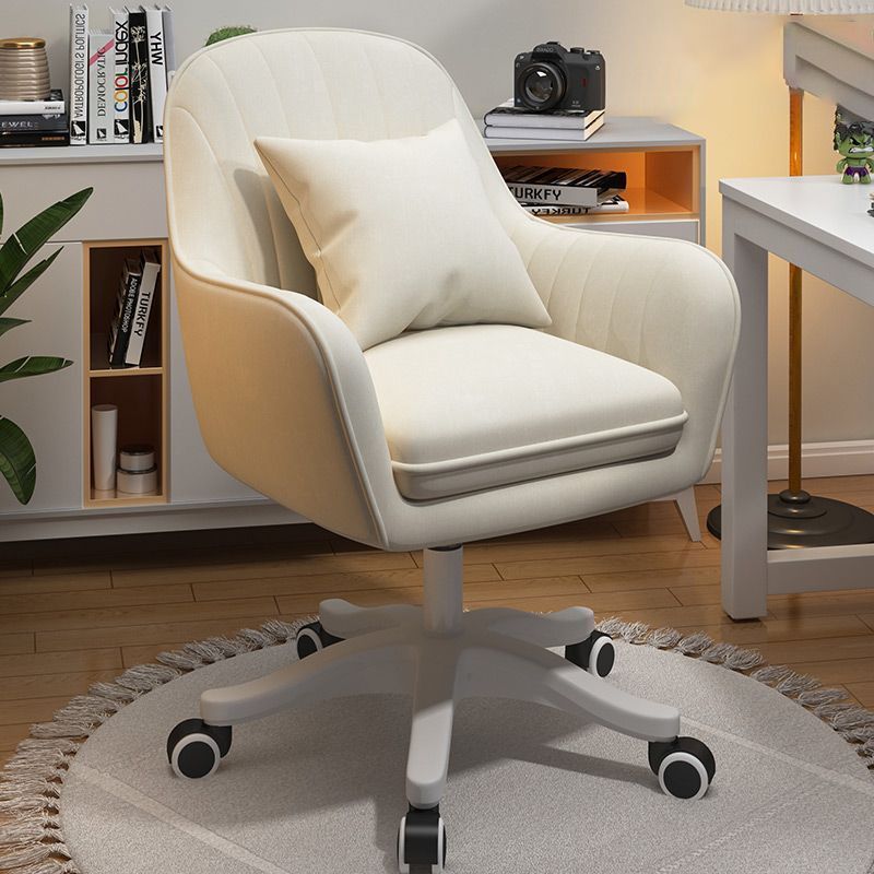 Silla Giratoria con Respaldo y Elevación para Computadora y Dormitorio - Pata de nylon / Franela blanco-crema-con-almohada está agotado y se enviará tan pronto como vuelva a estar disponible.