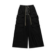Pantalones cargo negros con cordón y pierna ancha estilo Ro, unisex, rectos, holgados e informales, ropa de calle para hombre