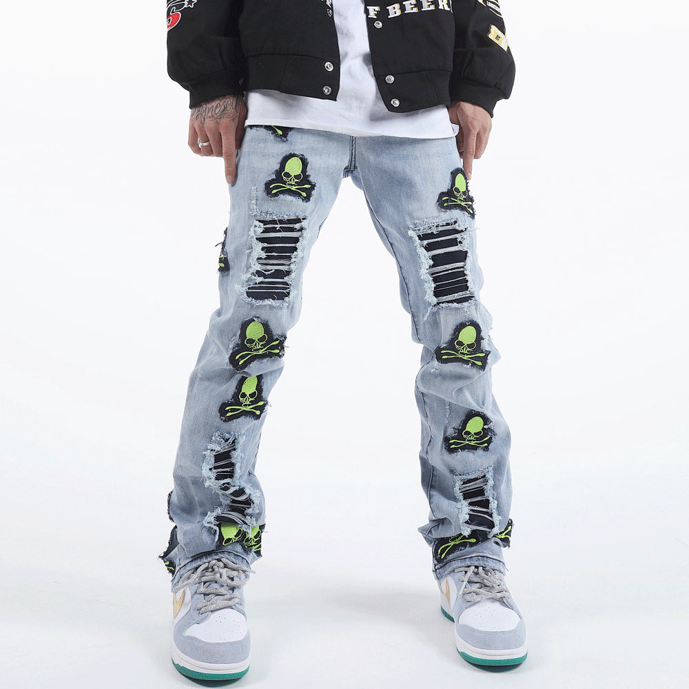 Pantalones rectos ajustados de marca de moda callejera para hombre - Azul / 3XL está agotado y se enviará tan pronto como vuelva a estar disponible.