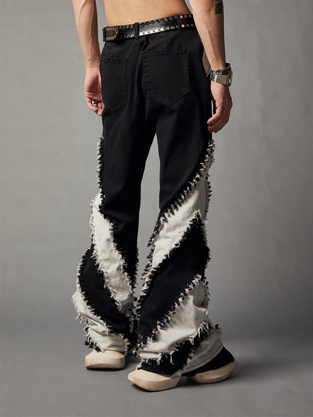 Vaqueros lavados con bordes rugosos y corte ajustado con parches