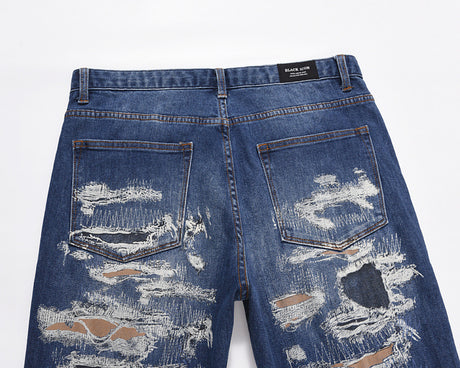 Vaqueros elásticos desgastados con parches estampados sencillos para hombre