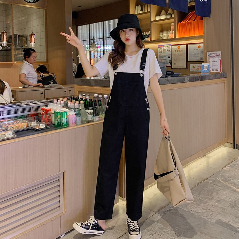 Mono vaquero informal de cintura alta y pierna ancha para mujer - Negro / Grande está agotado y se enviará tan pronto como vuelva a estar disponible.