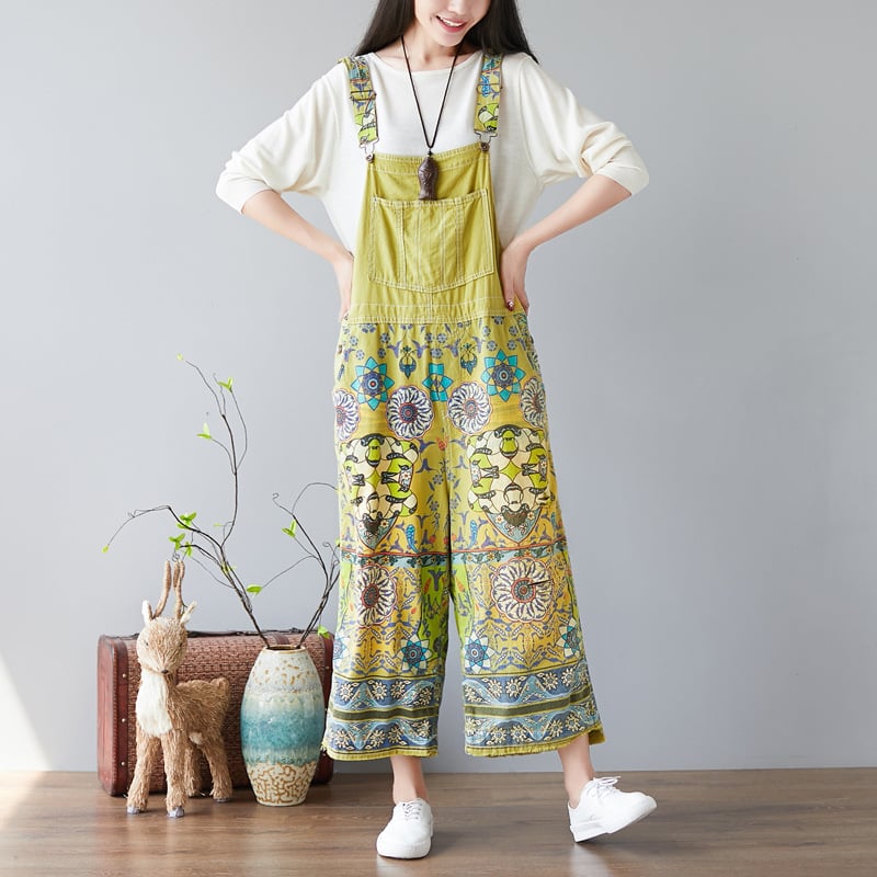 Pantalones anchos de mezclilla con entrepierna estampada - Verde / 1 está agotado y se enviará tan pronto como vuelva a estar disponible.